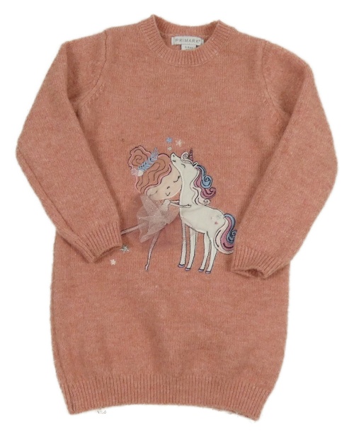 Růžové svetrové šaty s dívkou a jednorožcem Primark