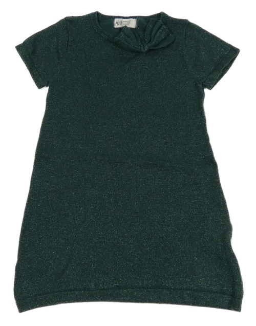 Tmavozelené třpytivé svetrové šaty s mašlí H&M