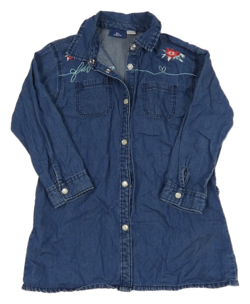 Tmavomodré riflové košilové propínací šaty s kytičkami