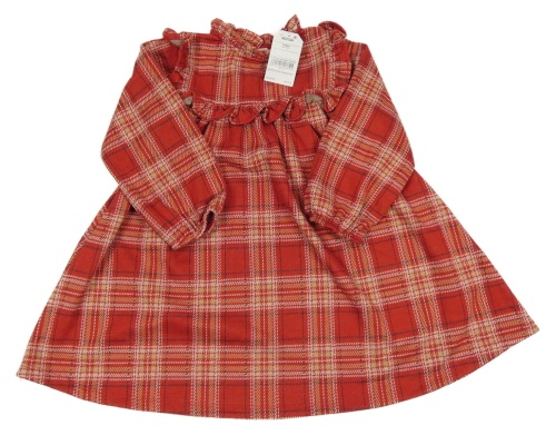 Nové - červeno-béžovo-černo-bílé kostkované vzorované úpletové šaty s volánky Next