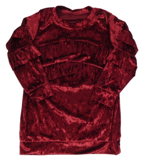 Rubínové sametové šaty s volánky