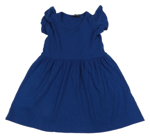 Tmavomodré žebrované šaty s volánky