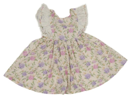 Smetanové květované plátěné šaty s mašlí