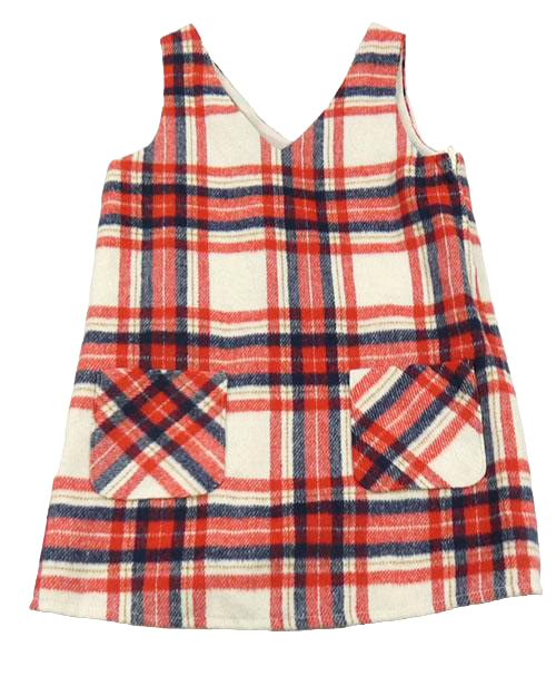 Smetanovo-červeno-tmavomodré kostkované vlněné šaty F&F