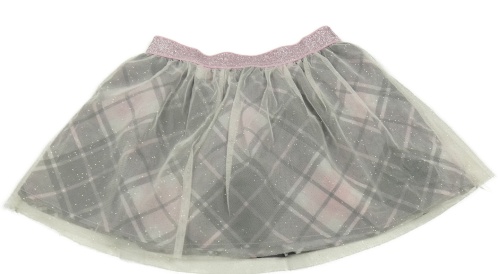 Šedo-růžovo-bílá kostkovaná sukně s tylovým prvkem Dopodopo