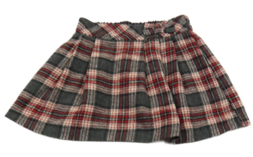 Šedo-červeno-bílá kostkovaná vlněná sukně TU