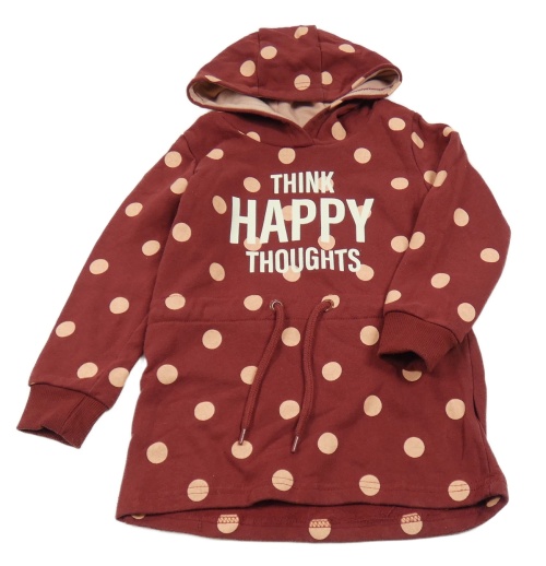 Vínové puntíkaté teplákové šaty s nápisem a kapucí Dopodopo
