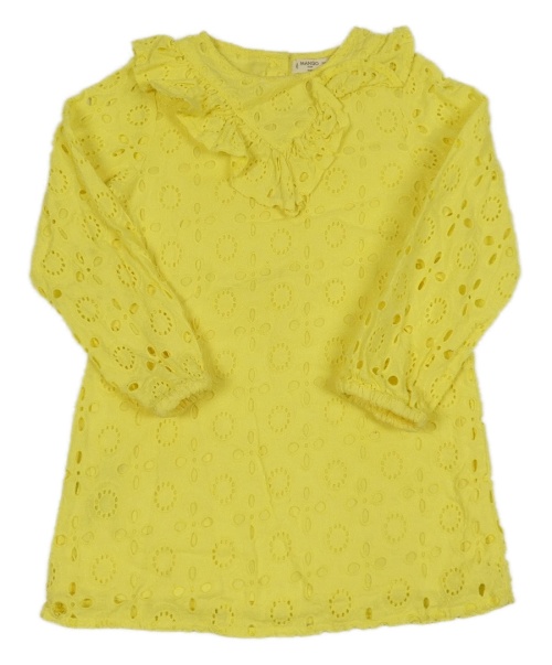 Žluté madeirové šaty s volánem Mango