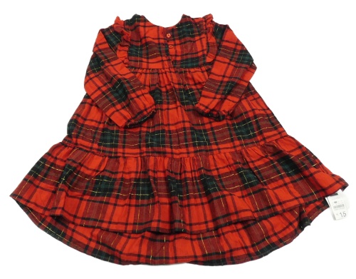 Nové - červeno-černo-tmavozeleno-zlaté kostkované šaty s volánky St. Bernard