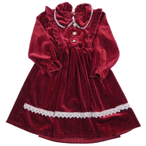 Vínové sametové třpytivé šaty s límečkem a volánky