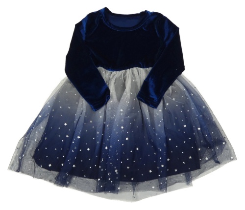 Safírovo-bílo-tmavomodré sametovo/tylové šaty s hvězdičkami