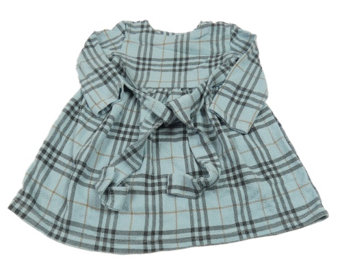 Světlemodro-šedo-medové kostkované šaty s páskem