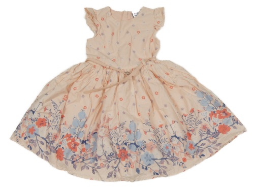 Světlerůžové plátěné šaty s kytičkami a volánky a páskem Topolino