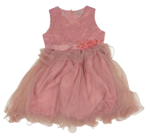 Světlerůžové šaty s tylovou sukní, květinami a stuhou v pase