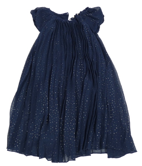 Tmavomodro-zlaté třpytivé plisované šifonové šaty s 3D mašlí C&A
