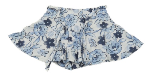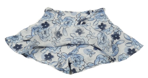Bílo-modrá květovaná sukně se všitými kraťasy a páskem