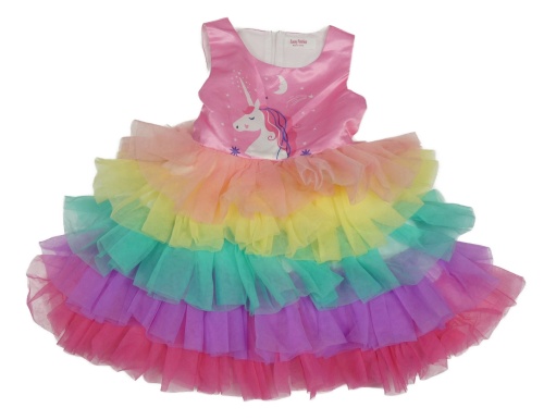 Růžovo-barevné saténovo/tylové šaty s jednorožcem Sunny Fashion