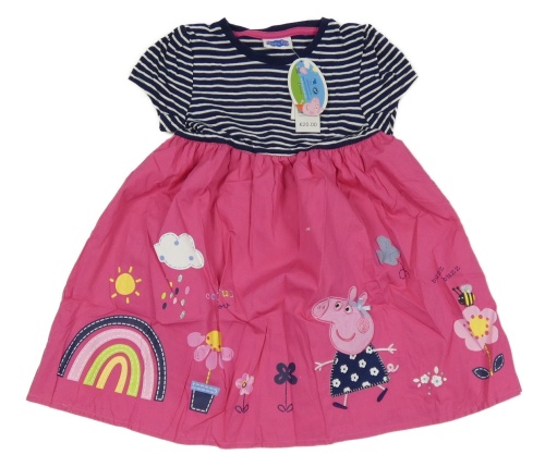 Nové - tmavorůžovo/tmavomodro-bílé šaty s Peppa Pig a pruhy St. Bernard