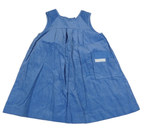Modré manšestrové šaty s kapsou a nášivkou