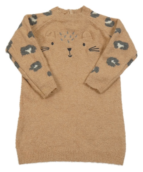 Starorůžovo-šedé vlněné svetrové šaty s kočičkou