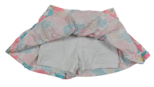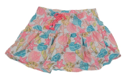 Bílo-růžovo-modrá sukně s mušlemi a všitými kraťasy