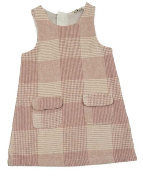 Růžovo-pudrové kostkované vlněné šaty F&F