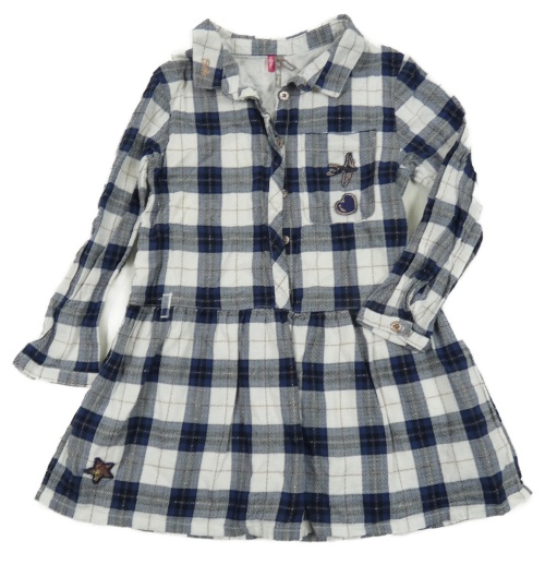 Tmavomodro-bílé kostkované třpytivé šaty s nášivkami Orchestra