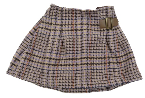Fialovo-tmavohnědo-béžovo-oranžová kostkovaná vzorovaná vlněná sukně s přezkou Next