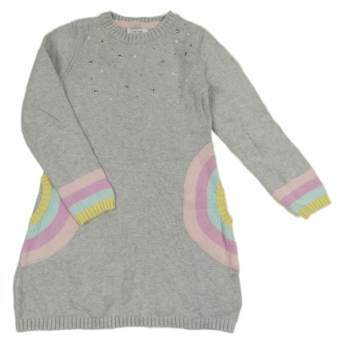 Světlešedé melírované svetrové šaty s kamínky a pruhy