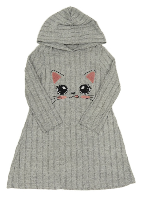 Šedé žebrované úpletové šaty s kočičkou a kapucí Shein