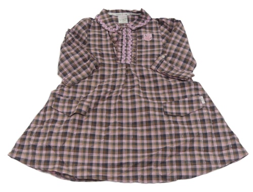Růžovo-černo-hnědé kostkované třpytivé košilové šaty s nášivkou