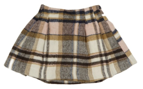 Hnědo-smetanovo-růžová kostkovaná vlněná sukně Dunnes Stores