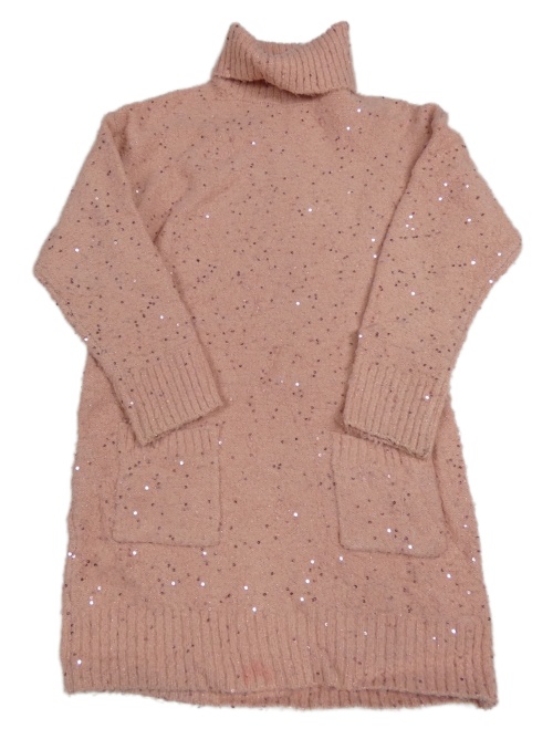 Starorůžové třpytivé svetrové šaty s rolákem Tu