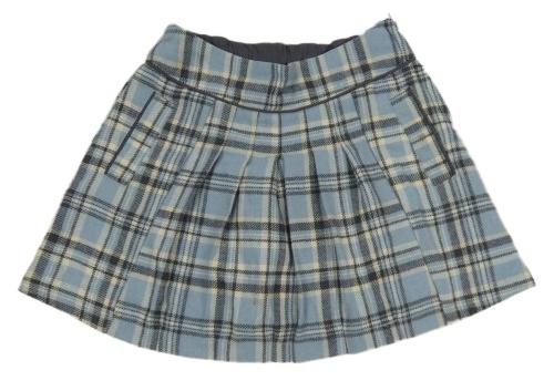Modro-šedo-smetanová kostkovaná vlněná skládaná sukně Next