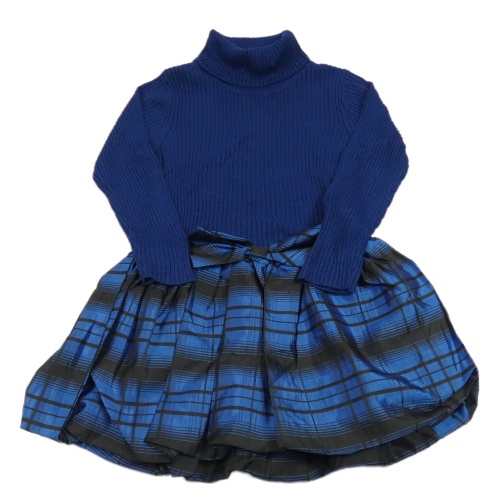 Modré pletené šaty s modro-černou kostkovanou šusťákovou sukní C&A