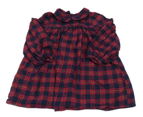 Červeno-tmavomodro-zlaté kostkované šaty s límečkem Nutmeg