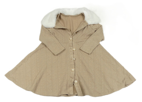 Béžové vzorované propínací šaty s kožešinovým límečkem