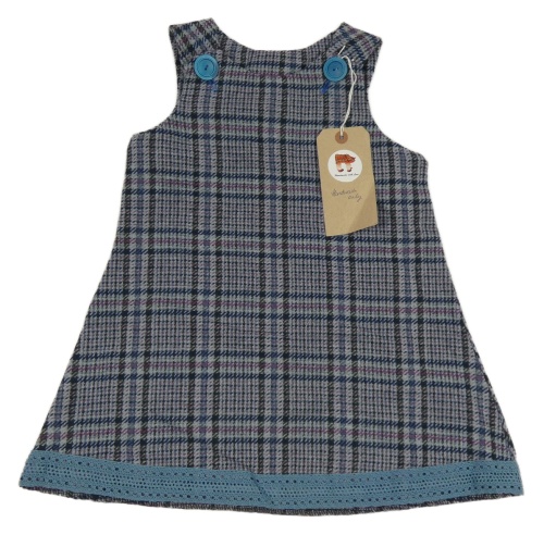 Nové - Šedo-modro-fialové kostkované vlněné laclové šaty