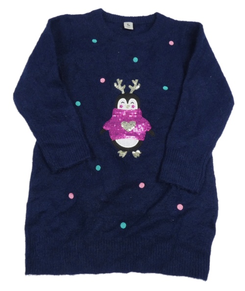 Tmavomodré puntíkaté svetrové šaty s tučňákem Tu