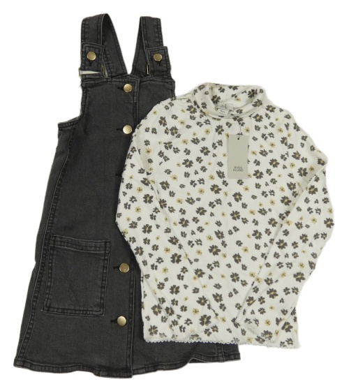• Nové - 2Set - Tmavošedé riflové propínací šaty + smetanový žebrovaný rolák s kytičkami RIVER ISLAND