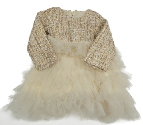 Smetanovo-hnědo-zlaté vlněno/tylové šaty