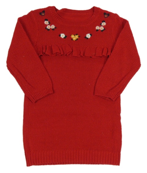 Červené svetrové šaty s kytičkami a volánkem Nutmeg