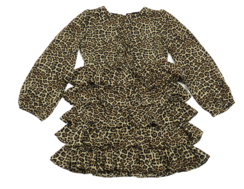 Béžovo-hnědé vzorované šaty s volánky BARDOT