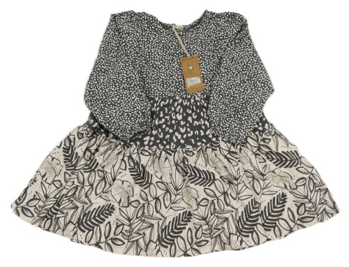 Nové - tmavošedo-smetanové melírované šaty s puntíky a vzorem a lístečky Next