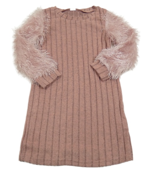 Starorůžové úpletové žebrované šaty s chlupatými rukávy shein
