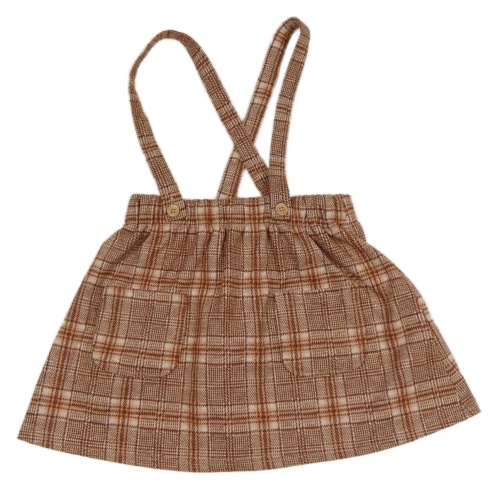 Hnědo-smetanová kostkovaná úpletová sukně s kšandami George