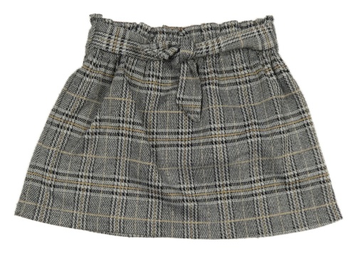 • Černo-světlešedo-hnědá kostkovaná vzorovaná paper bag úpletová sukně se zavazováním PRIMARK