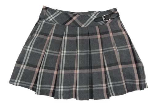 Šedo-černo-světlerůžovo-bílá kostkovaná skládaná sukně s přezkou C&A