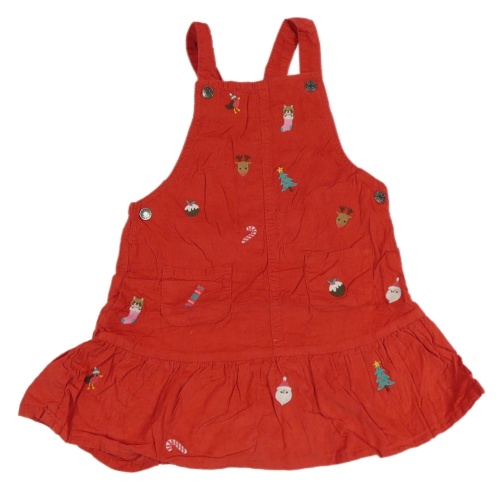 Červené manšestrové laclové šaty se Santou a stromky Tu