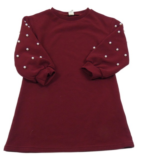 Tmavovínové vzorované šaty s perlami SHEIN